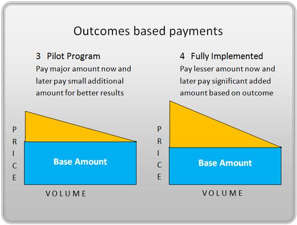 Medicare is piloting this concept, paying small bonuses to providers who show better outcomes. As data is obtained, base amounts can be reduced and the outcome gradually increased bringing the U.S. closer to the world model.