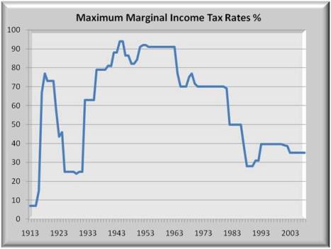 Over the past 28 years, there has been a very sharp drop in marginal tax rates leading to two results. First, high income earners keep more of their income. But with high marginal rates, companies did not pay extremely high salaries and bonuses as most of it went towards taxes. With lower marginal rates, executive compensation began an upward spiral that far exceeds their counterparts in other countries.