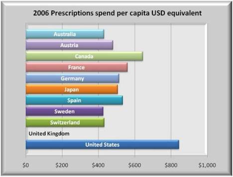 The U.S. pays almost double per capita for its drugs versus the OECD.