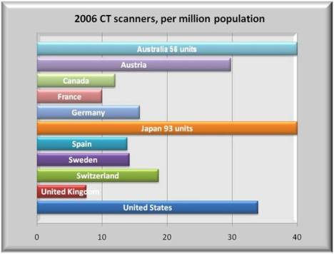Except for Japan, the U.S. has more than twice as many MRI’s as other nations.